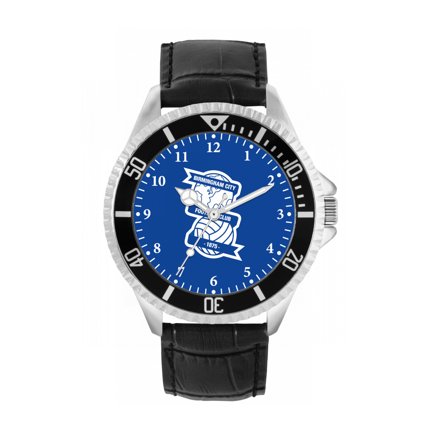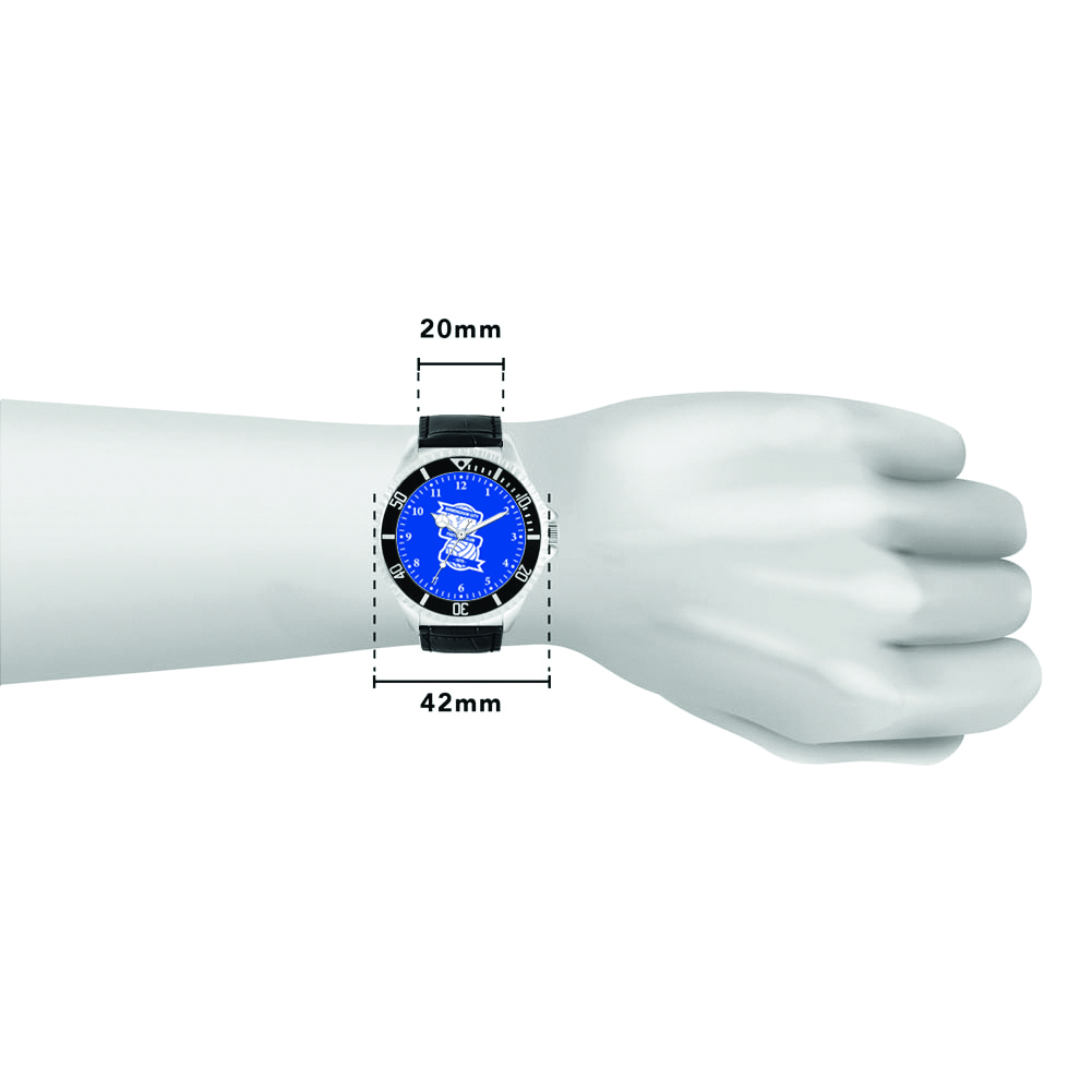 Celebrate your support for the Blues with classic elegance in this BCFC Black Leather Strap Watch. Featuring a striking royal blue dial proudly displaying the Birmingham City FC crest, this timepiece combines heritage with timeless design.